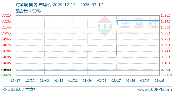 3月17日,生意社对苯醌基准价为65250.00元/吨,与本月初持平。