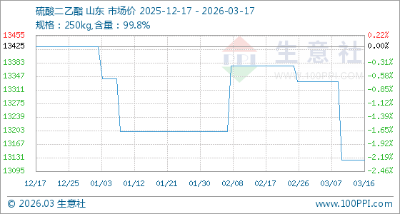 3月17日生意社硫酸二乙酯基准价为13125.00元/吨