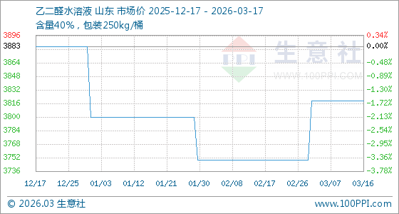 3月17日生意社乙二醛水溶液基准价为3820.00元/吨