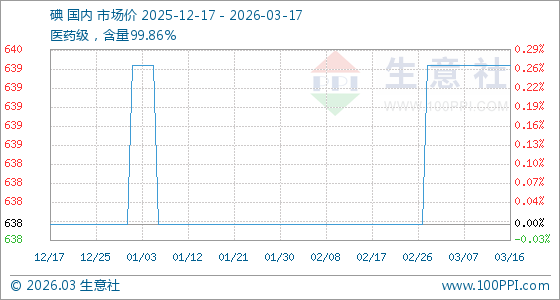 3月17日生意社碘基准价为640.00元/千克