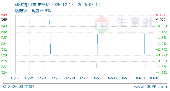 3月17日生意社碘化钠基准价为522.50元/千克
