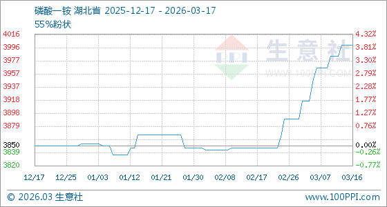 3月17日生意社磷酸一铵基准价为4000.00元/吨