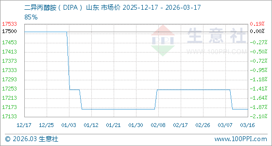 3月17日生意社二异丙醇胺(DIPA)基准价为17166.67元/吨