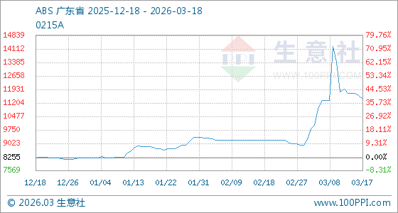 3月18日生意社ABS基准价为11433.33元/吨