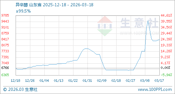 3月18日生意社异辛醇基准价为8416.67元/吨