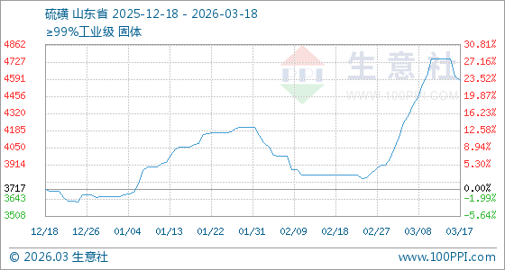 3月18日生意社硫磺基准价为4583.33元/吨