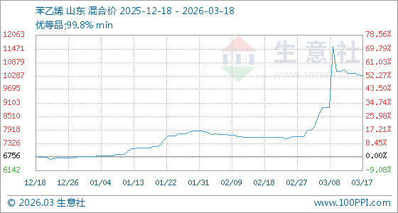 3月18日生意社苯乙烯基准价为10310.00元/吨