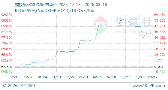 3月18日生意社镨钕氧化物基准价为795000.00元/吨