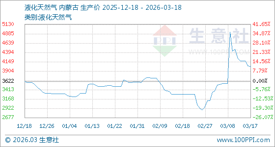 3月18日生意社液化天然气基准价为4024.00元/吨