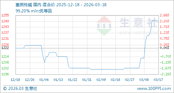 3月18日生意社重质纯碱基准价为1248.57元/吨