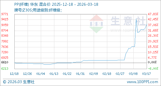 3月18日生意社PP(纤维)基准价为9125.00元/吨