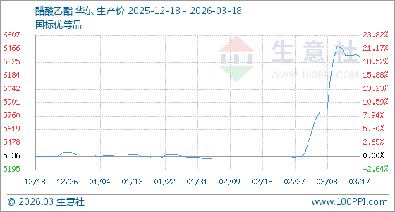 3月18日生意社醋酸乙酯基准价为6390.00元/吨