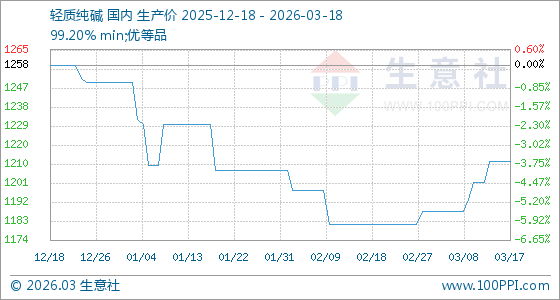 3月18日生意社轻质纯碱基准价为1212.00元/吨