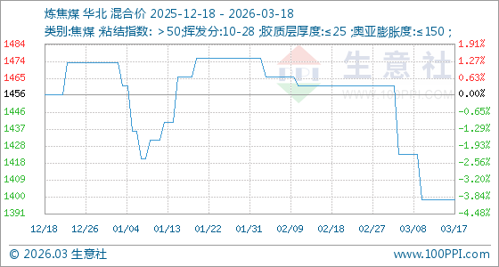3月18日生意社炼焦煤基准价为1398.75元/吨