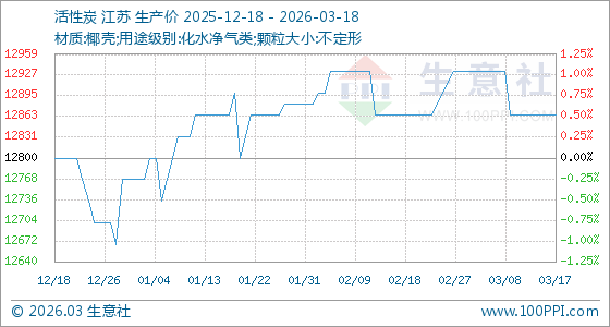 3月18日生意社活性炭基准价为12866.67元/吨