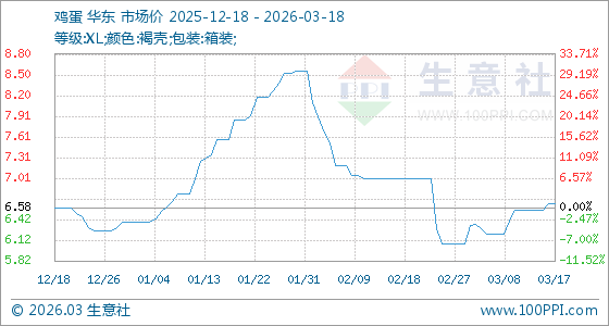 3月18日生意社鸡蛋基准价为6.65元/公斤