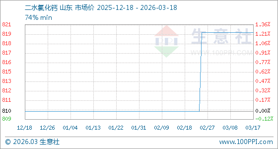 3月18日生意社二水氯化钙基准价为820.00元/吨