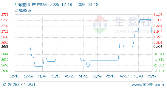 3月18日生意社甲酸钠基准价为2700.00元/吨