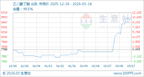 3月18日生意社乙二醇丁醚基准价为8614.29元/吨