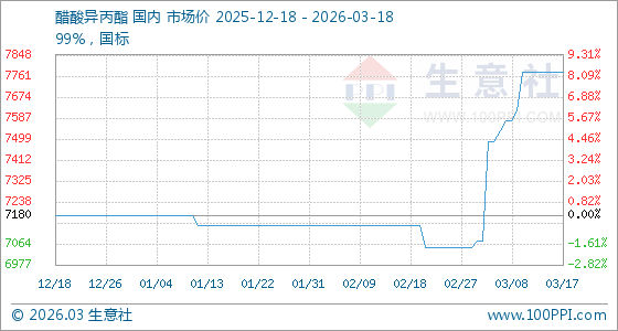 3月18日生意社醋酸异丙酯基准价为7775.71元/吨