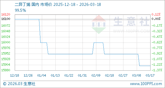 3月18日生意社二异丁烯基准价为15900.00元/吨