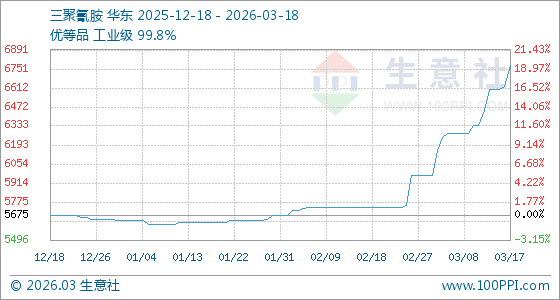 3月18日生意社三聚氰胺基准价为6775.00元/吨