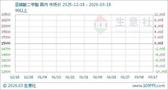 3月18日生意社亚磷酸二甲酯基准价为15000.00元/吨