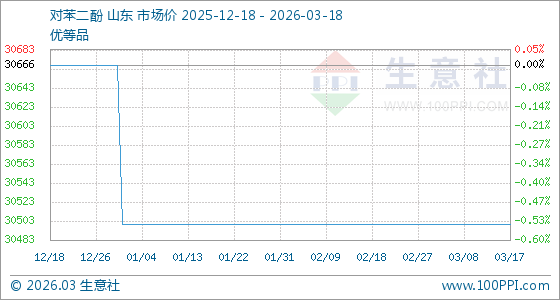 3月18日生意社对苯二酚基准价为30500.00元/吨