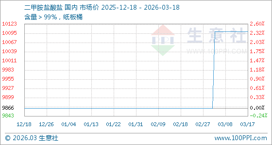 3月18日生意社二甲胺盐酸盐基准价为10100.00元/吨