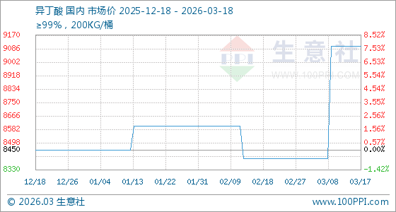 3月18日生意社异丁酸基准价为9100.00元/吨