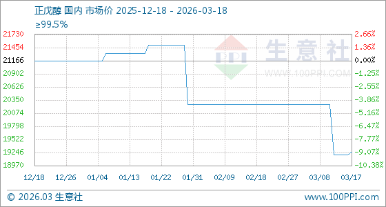 3月18日生意社正戊醇基准价为19250.00元/吨
