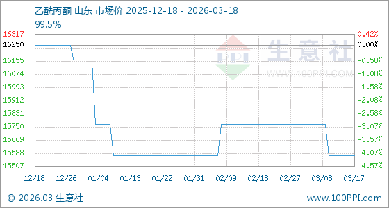 3月18日生意社乙酰丙酮基准价为15575.00元/吨