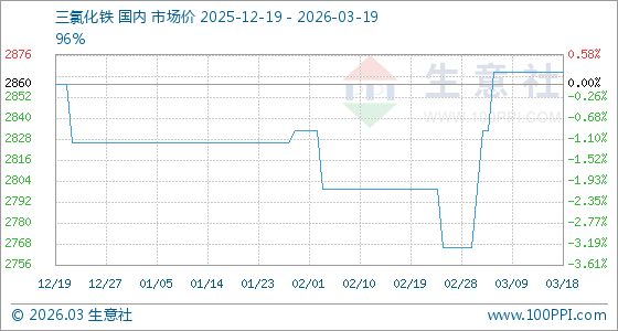 3月19日,生意社三氯化铁基准价为2866.67元/吨,与本月初(2766.67元/吨)相比,上涨了3.61%。