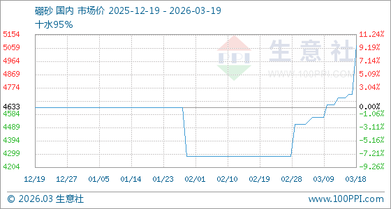 3月19日生意社硼砂基准价为5075.00元/吨