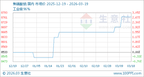 3月19日生意社焦磷酸钠基准价为8766.67元/吨