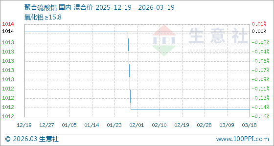 3月19日生意社聚合硫酸铝基准价为1012.50元/吨