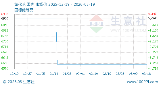 3月19日,生意社氯化苯基准价为6600.00元/吨,与本月初持平。