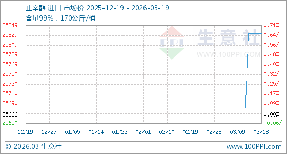 3月19日生意社正辛醇基准价为25833.33元/吨