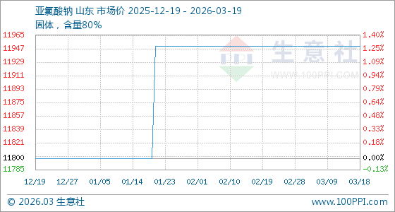3月19日生意社亚氯酸钠基准价为11950.00元/吨