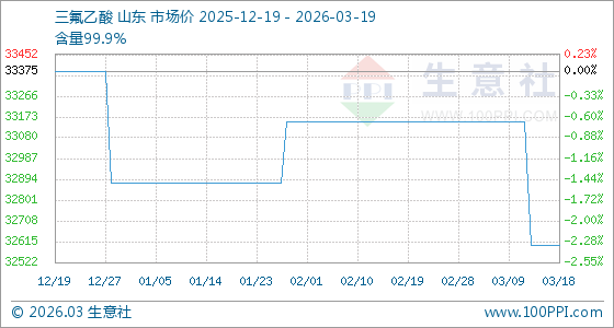 3月19日生意社三氟乙酸基准价为32600.00元/吨