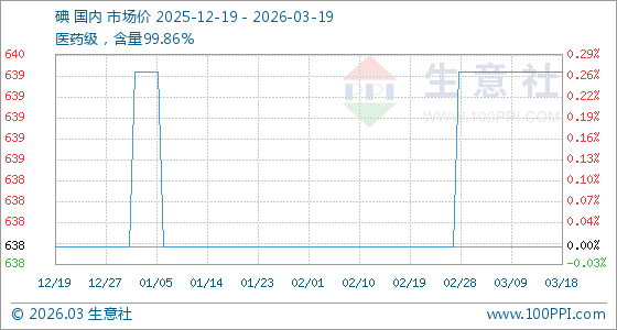3月19日,生意社碘基准价为640.00元/千克,与本月初持平。