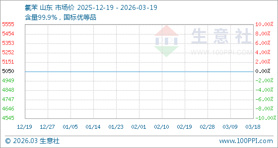 3月19日,生意社氯苯基准价为5050.00元/吨,与本月初持平。