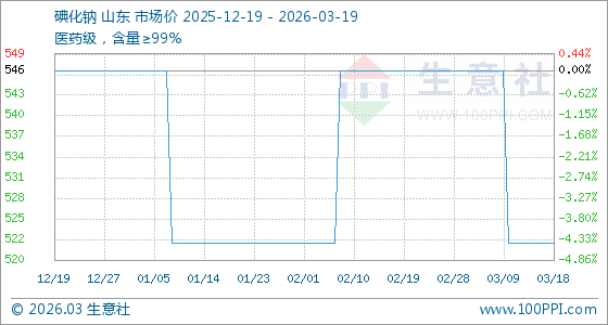 3月19日生意社碘化钠基准价为522.50元/千克