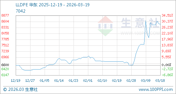 3月19日生意社LLDPE基准价为8476.67元/吨