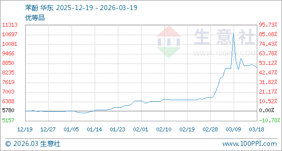 3月19日生意社苯酚基准价为8575.00元/吨