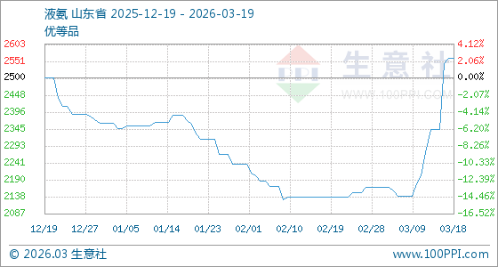 3月19日生意社液氨基准价为2560.00元/吨