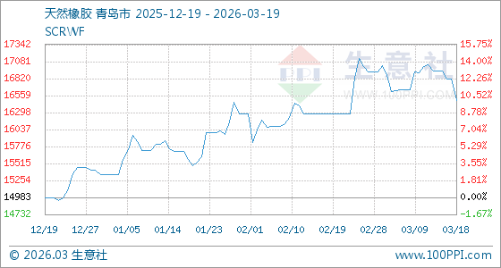 3月19日生意社天然橡胶基准价为16483.33元/吨