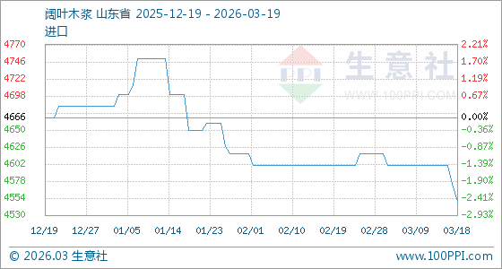 3月19日生意社阔叶木浆基准价为4550.00元/吨