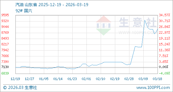 3月19日,生意社汽油基准价为8955.29元/吨,与本月初(7286.60元/吨)相比,上涨了22.90%。