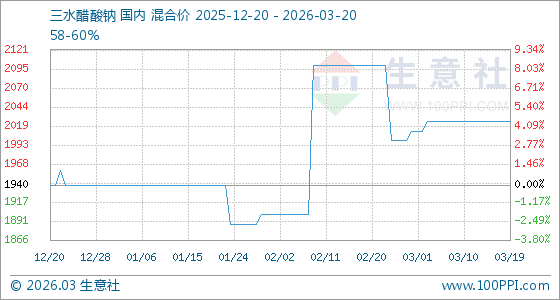 3月20日生意社三水醋酸钠基准价为2025.00元/吨